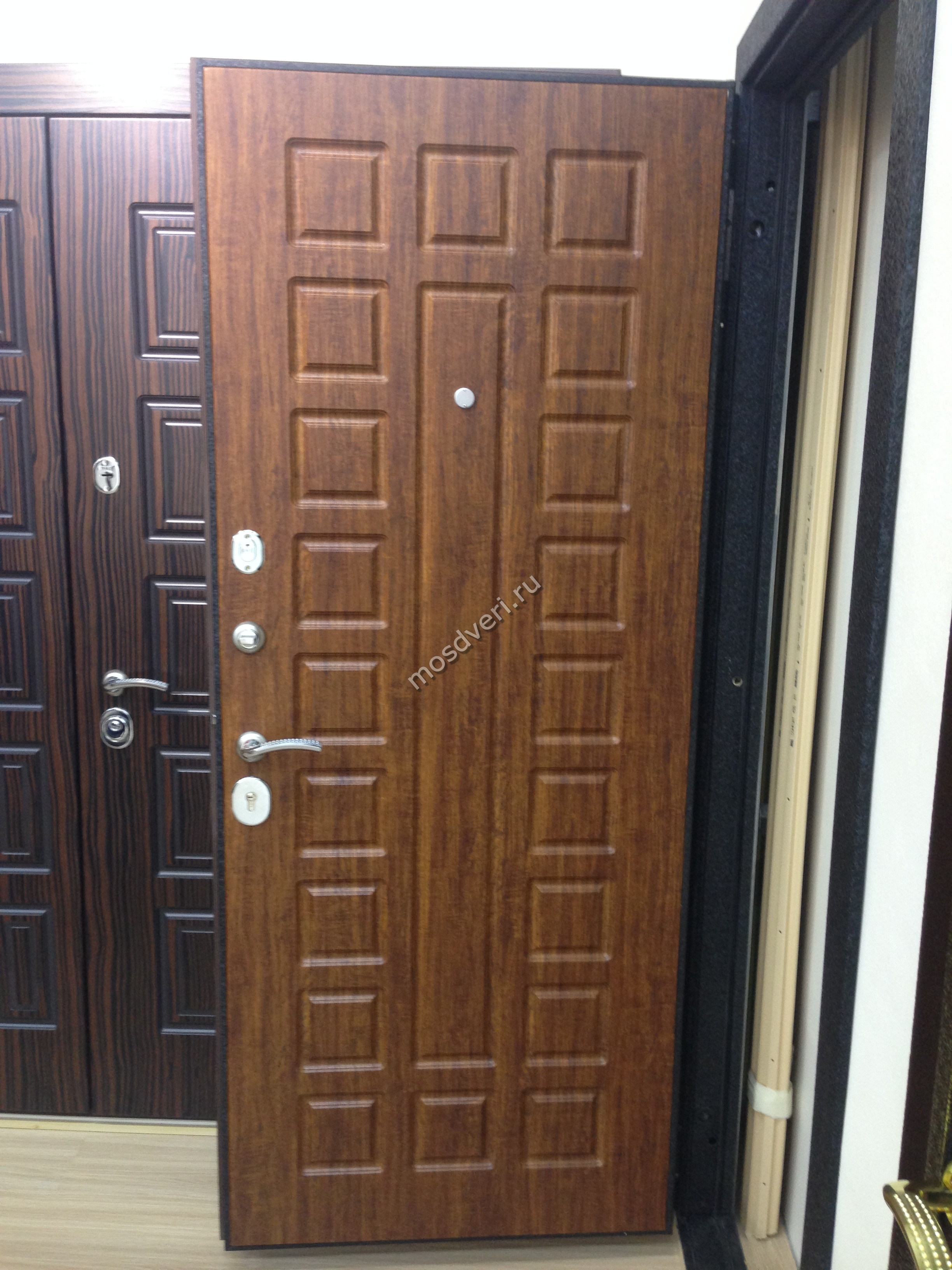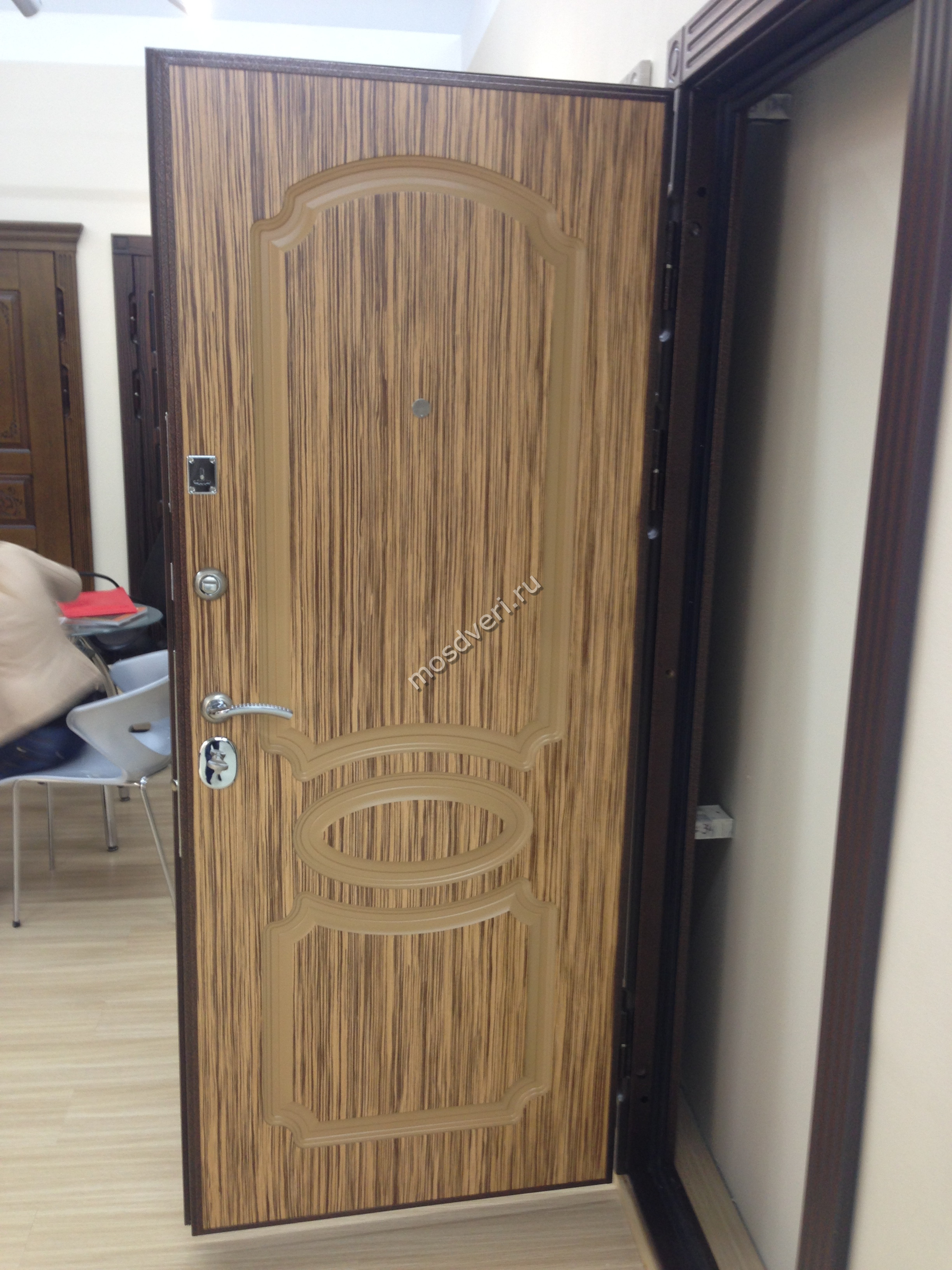 Брал дверь с зеркалом во внутренней отделке, снаружи антик медь. Выглядит дорого, соседи уже спрашивали где заказывал)) Толщина стали 2мм если не ошибаюсь. Замер сделали быстро, приехали на следующий день. По дверному проему все четко подогнали. Рекомендую, нормальная контора.