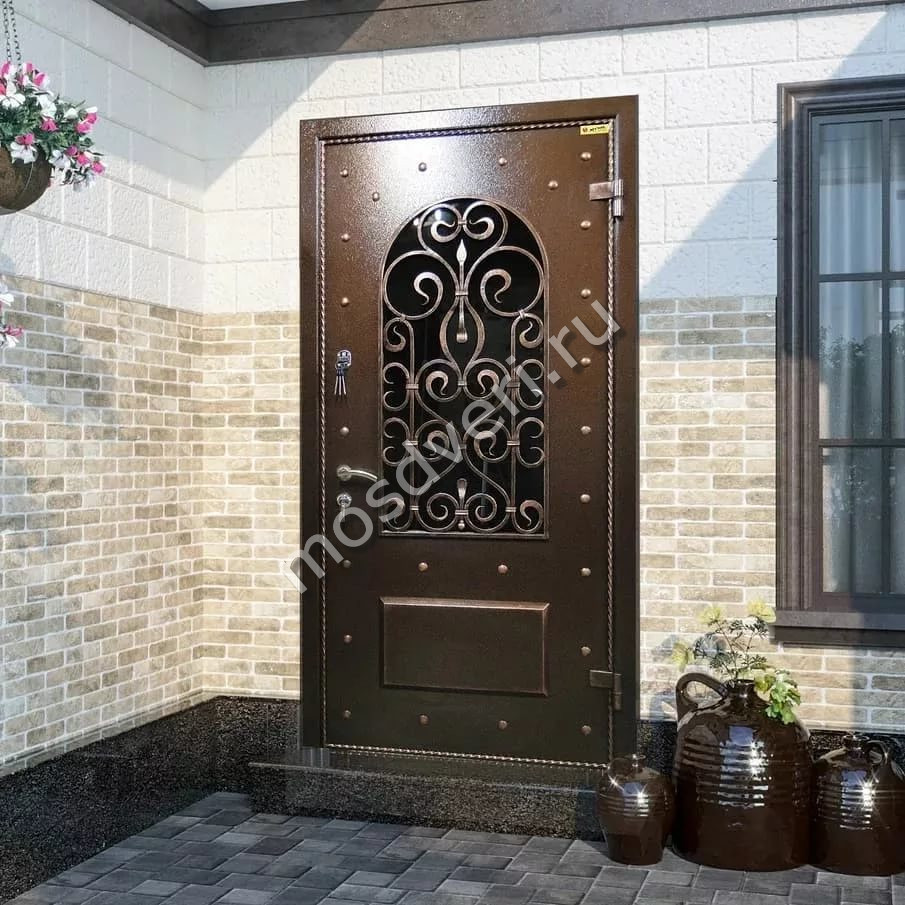 Входные двери со стеклом и ковкой в Лебедяни